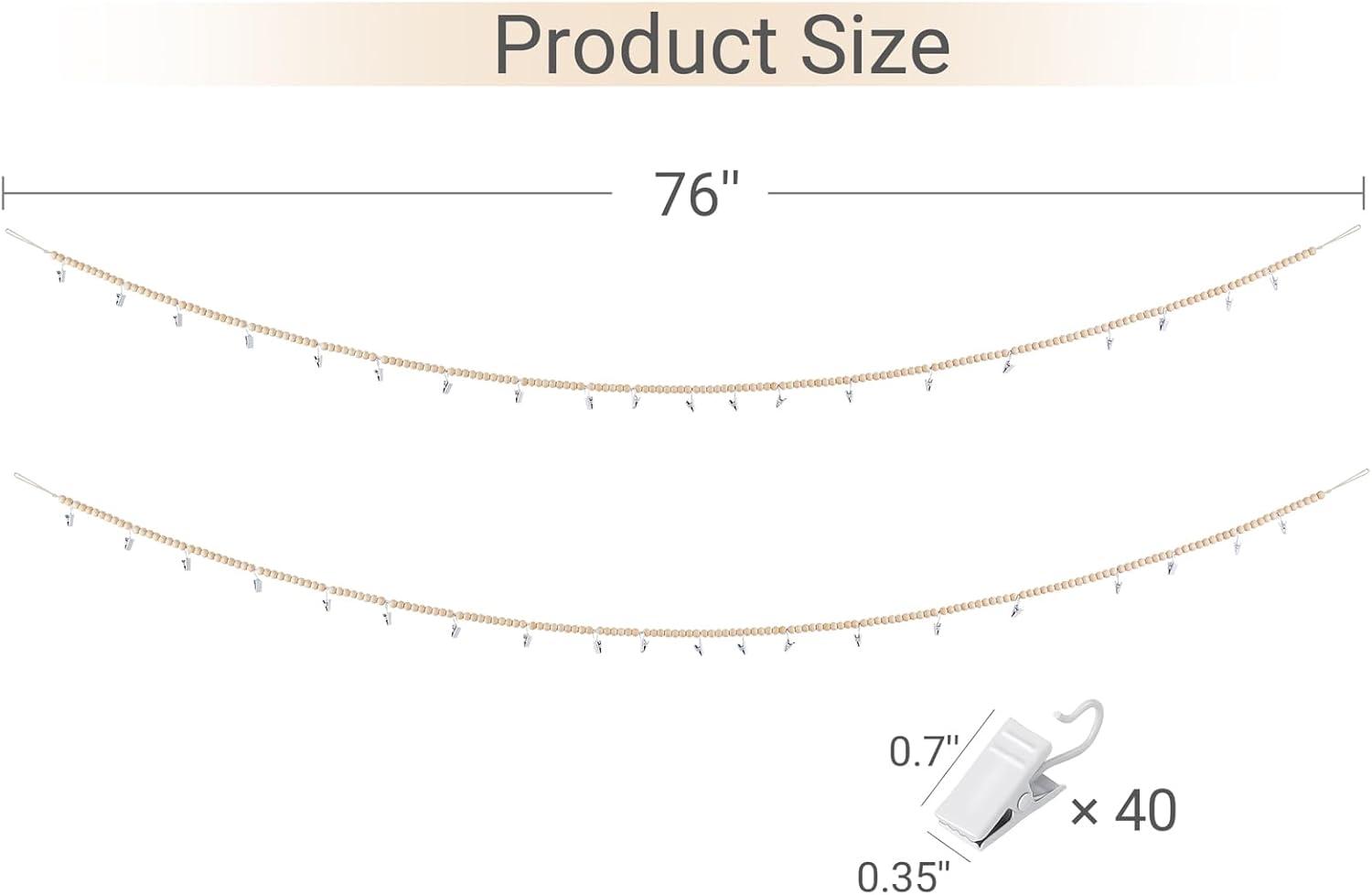 Bring Charm and Order to Any Kids' Space Tame the toy clutter in a fun, stylish way with our wooden bead and metal clip hanging organizer. Designed for both practicality and visual appeal, it's the perfect solution for hanging stuffed animals, baby clothes, artwork, or photos—keeping them off the floor and beautifully displayed. Crafted with warm, natural-toned wood beads and sturdy metal clips, this organizer adds a touch of rustic elegance to nurseries, playrooms, or bedrooms. Measuring 78.5 inches long with 40 metal clips, it offers plenty of room to customize your layout, whether hung vertically or horizontally. Easy to install and kid-friendly to use, it encourages little ones to participate in cleanup time—turning organization into play. A thoughtful, eco-conscious gift for birthdays, baby showers, or holidays, it's more than just storage: it's a way to create a tidy, joyful space your child will love.