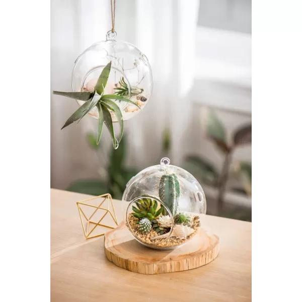Material: High boron silicon heat resistant glass. Package included 2 glass globes and hanging rope. Note: No plants or decorations included in this item!
