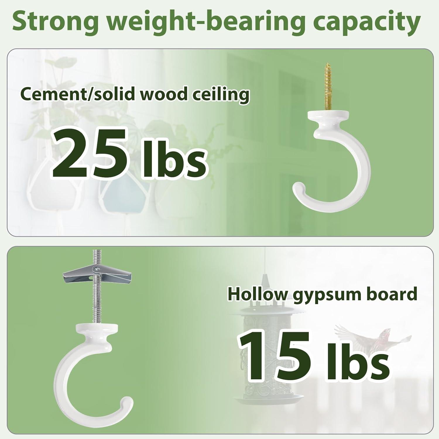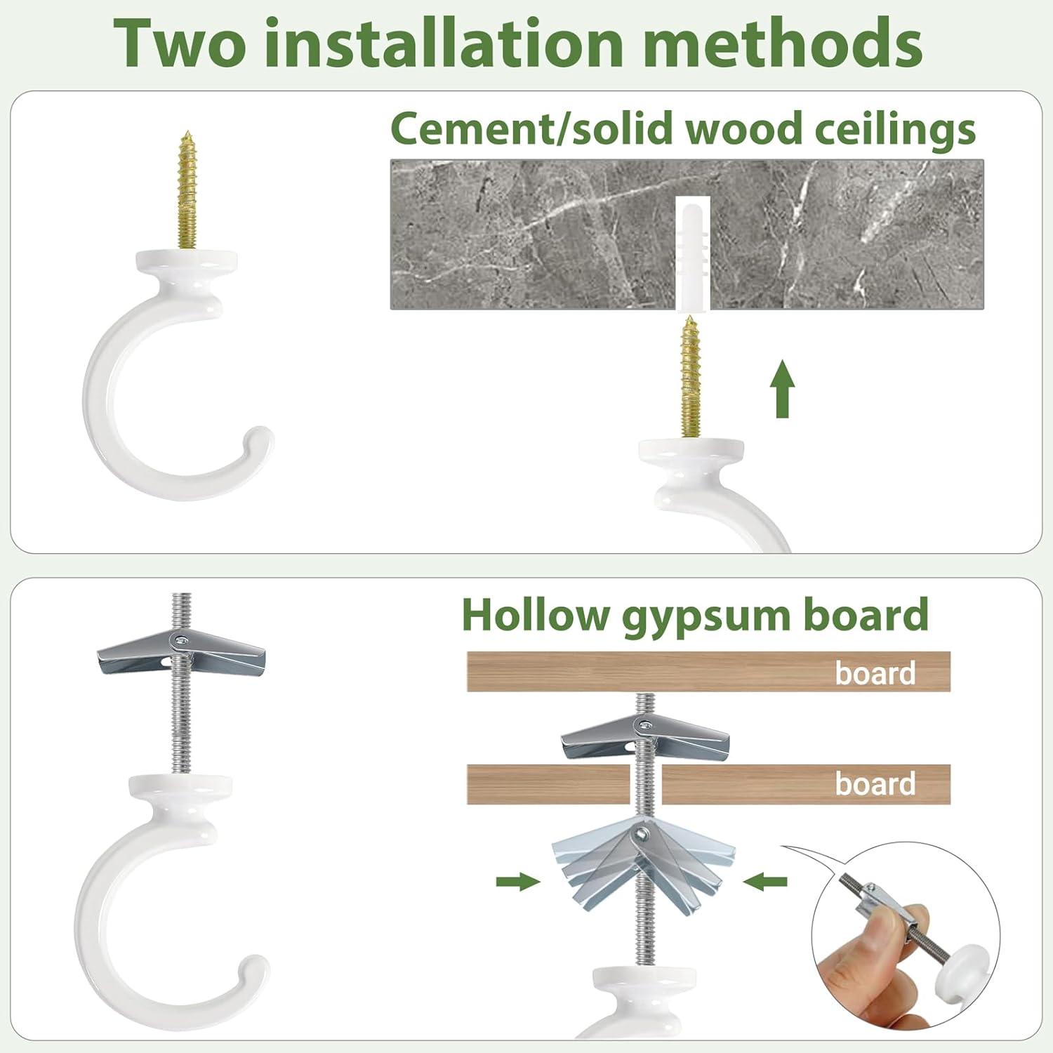 Complete Package: This set includes 2 sets of ceiling hooks, including plant hooks, expansion tubes, screw bolts, screws, and spring toggle wings. Each set includes all necessary hardware to meet your needs