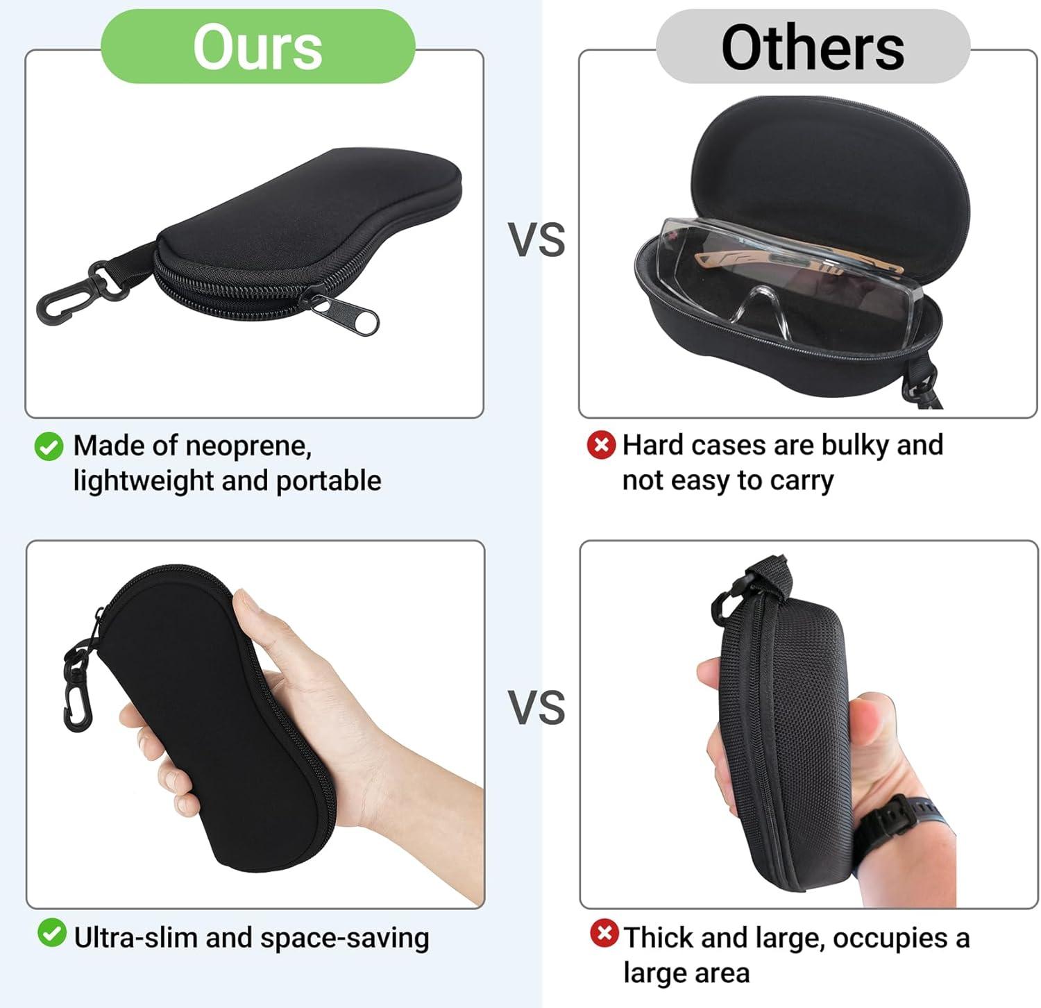 Our eyelasses case with premium soft lining can avoid scratching between the glasses. And the ultra-lightweight and soft neoprene cushions eyewear against drops and bumps, ensuring effective protection for your eyeglasses.
