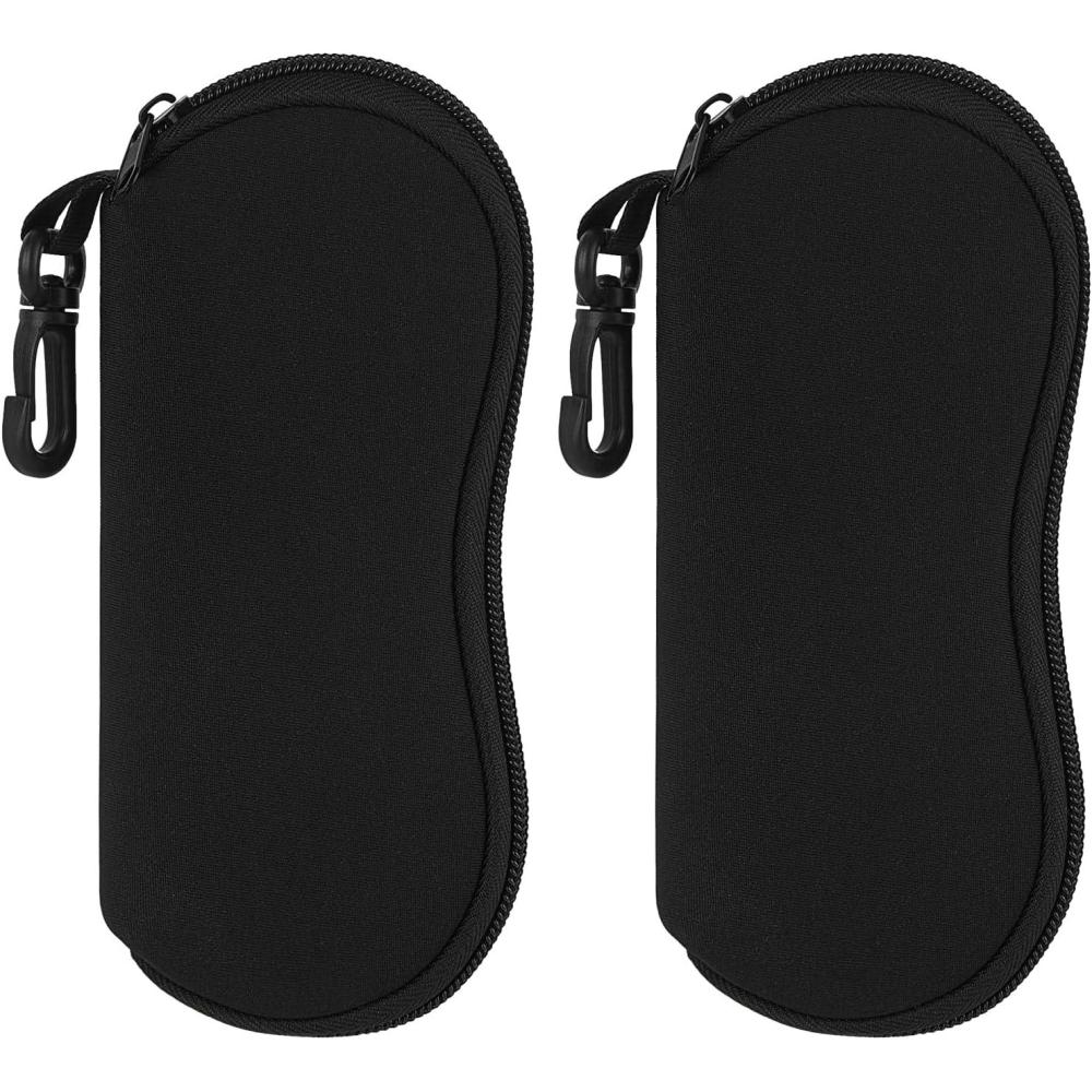 Mkono Eyeglasses Case 2 Packs Ultra Light Neoprene Travel Glasses Cases Soft Sunglasses Case with Clip for Men Women, Black
