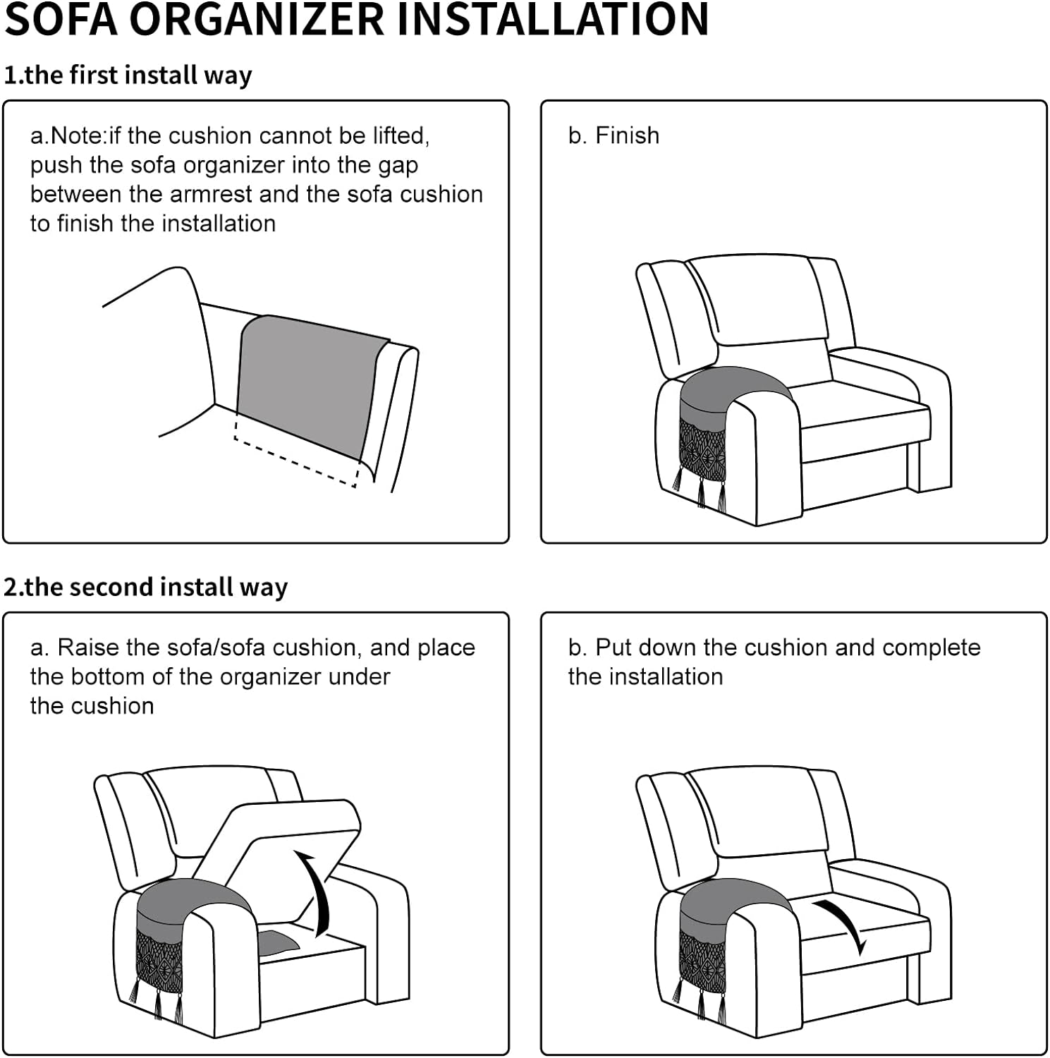 Our adjustable armrest organizer can fit any size of armrests on couches and sofas. With non-slip particles on the back, the caddy is firmly attached to the couch, and four pockets are designed for organizing your necessities, which are cute and functional. Note: The storage bag just fits the sofa with a cushion or bed with a cushion, to advoid it falls off.