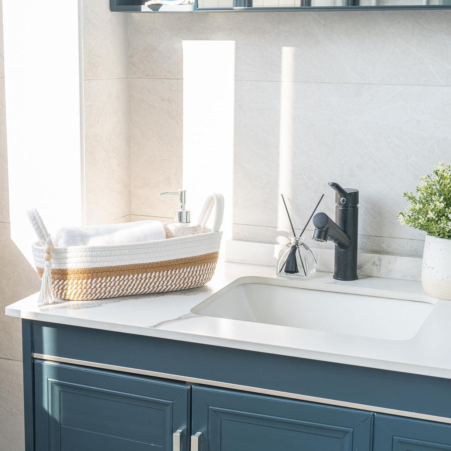 Be the first to review “Mkono Small Storage Basket for Toilet Tank Top Boho Bathroom Decor Woven Rope Toilet Paper Tray Organizer for Shelf Bedroom Living Room, White and Brown, 13″ L x 6″ W(White and Brown)”