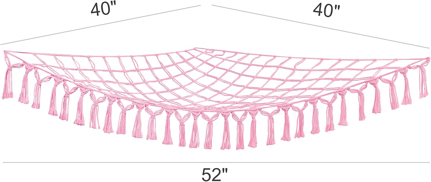 Macrame Toy Storage Net: Can be expand to 40” x 40″ x 52″, this stuffed animal hammock can hold lots of stuffed animals and toys, keep your your child's room organized and neat. Large capacity toy hammock is the ideal choice for organizing kid's bedroom playroom, nursery.