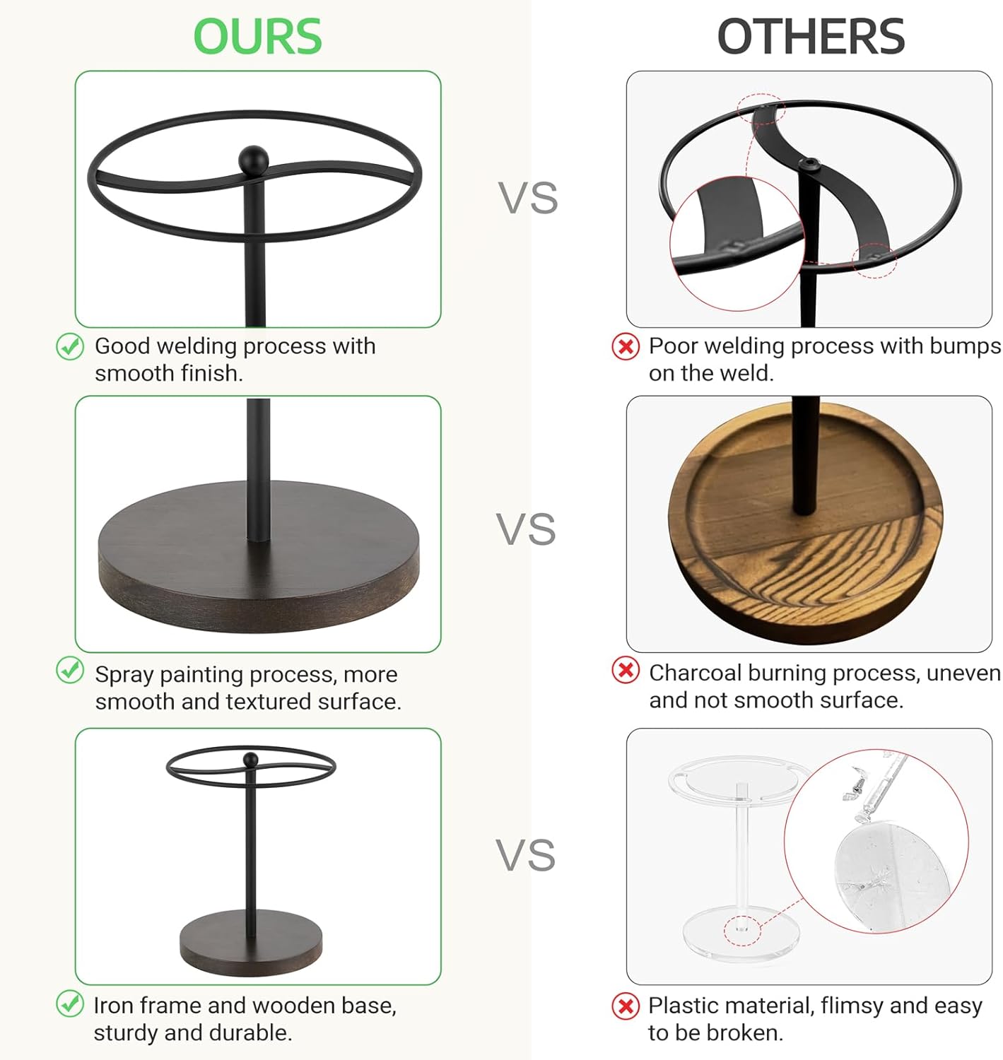 Simple & Stylish Design : Rustic round wood base and premium industrial iron frame are the perfect combination of retro and modern design styles. Suitable for a variety of style home decors. In addition to storing glasses, you can also store accessories with active key chain like sanitizer holders, keys, trinket, little ornaments, and so on