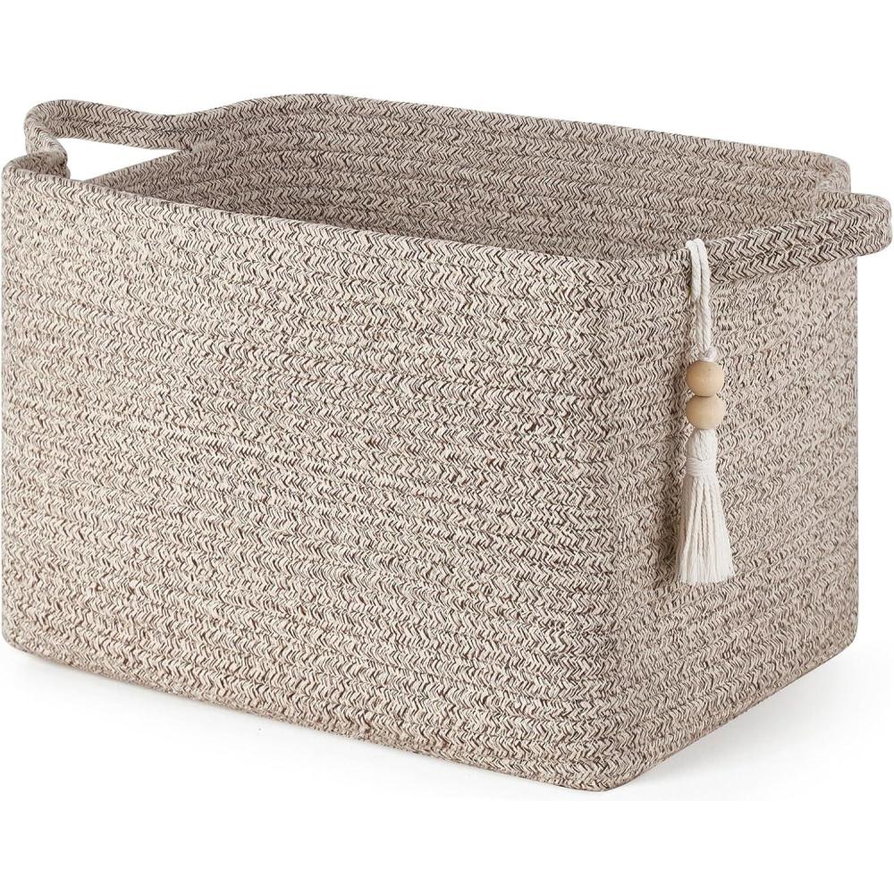 Unique Design: The storage basket features wooden beads tassel decorations, infusing natural vitality into its minimalist design. The handmade wooden beads detail not only enhances the aesthetic appeal of the storage basket but also showcases quality, making it a practical and decorative storage item in any home decor style.