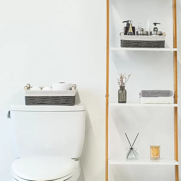 Space Saving: Our organizing baskets are designed to hold a wide range of items for different purposes. They can be used to store toilet papers over the toilet tank or shelf in the bathroom, as well as towels, toiletries, cosmetics, stationery, skincare products, perfume, brushes etc., allowing you to efficiently organize your space and access items easily.